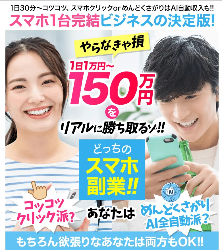 - 1日30分〜コツコツ、スマホクリックorめんどくさがりはAI自動収入も!!