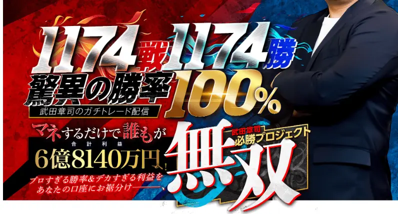 再現率100%と謳っていますが、投資で100%儲かるというのはありえませんし、それを謳う時点で法律違反です。