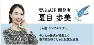 自身が経験したお金に困る苦しみを分かち合いたいという思いから、他の人々を助けるために、WriteUPを立ち上げ、運営と会員募集の活動を行っている