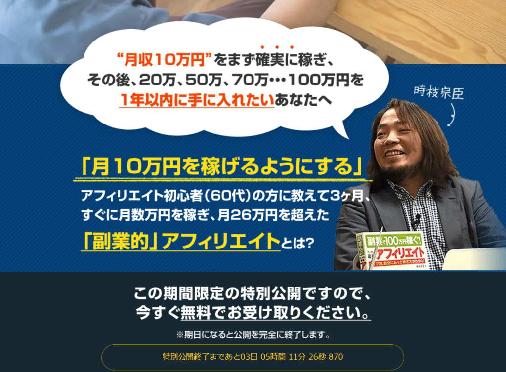 おさらいになりますが、”インスタントアフィリエイト”は、1サイト10分で作って稼ぐ秘密のカラクリ&月収10万円を確実に稼ぐ方法を期間限定公開の「副業的」アフィリエイトとのことです。