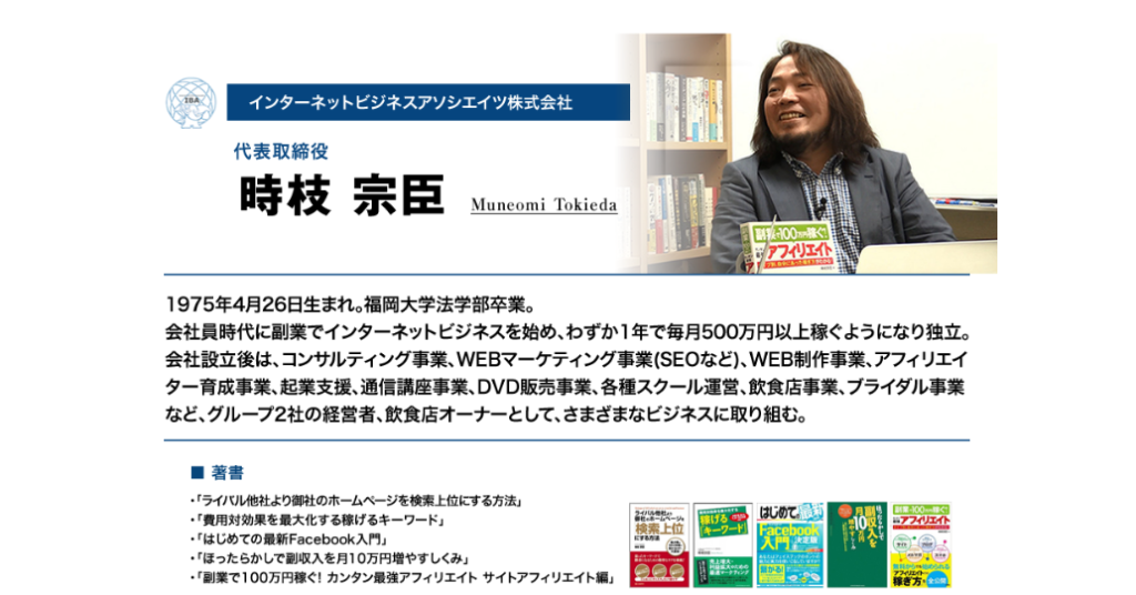 提供者はインターネットビジネスアソシエイツ株式会社の代表取締役の時枝宗臣氏
