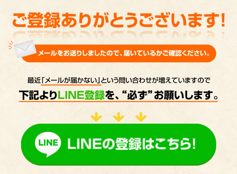 そしてその後は、お決まりのLINE登録ですね。名前まで登録したから、きっと登録したメールアドレスは売り飛ばされる可能性大です。