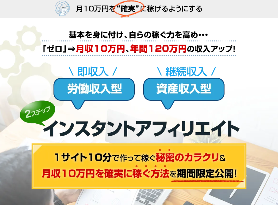 おさらいになりますが、”インスタントアフィリエイト”は、1サイト10分で作って稼ぐ秘密のカラクリ&月収10万円を確実に稼ぐ方法を期間限定公開の「副業的」アフィリエイトとのことです。