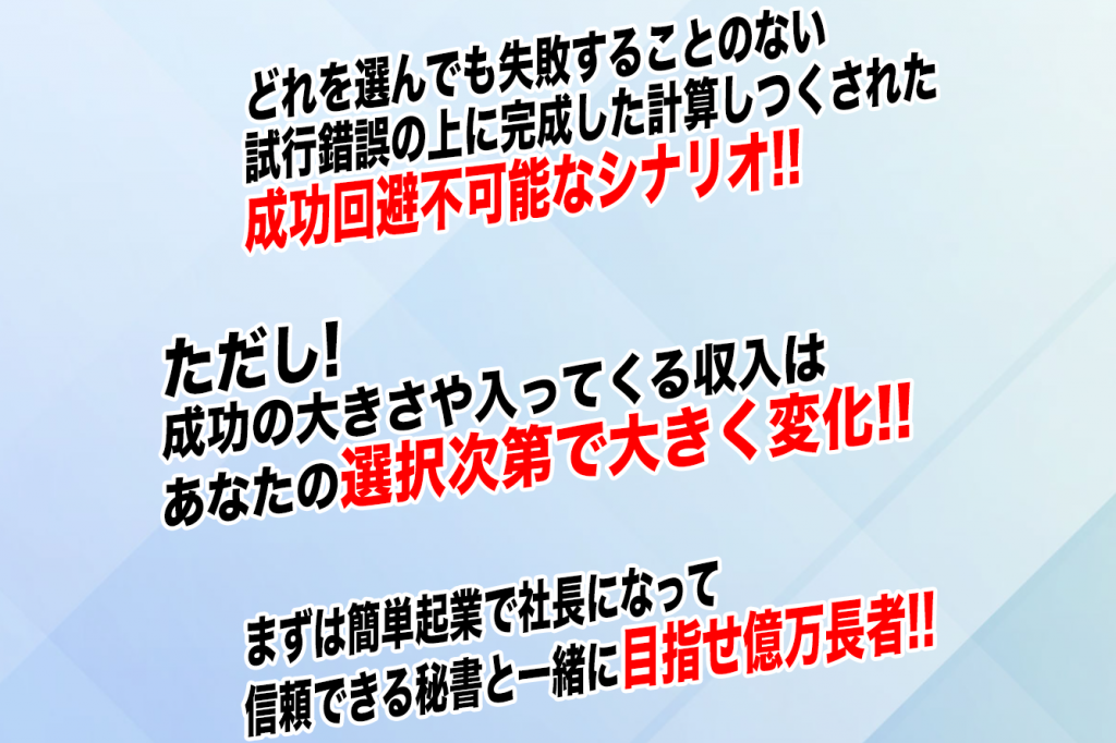 どれを選んでも失敗することない試行錯誤の上に完成した計算しつくれた成功回避不可能なシナリオとあり、失敗することがないということは、必ず稼げるということなのでしょうか?