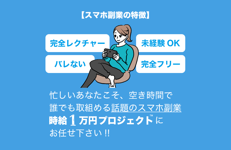 必要なものはスマホだけとのこと。空いた時間で時給1万円も稼げるのなら最高です。アルバイトより効率がいいですよね。