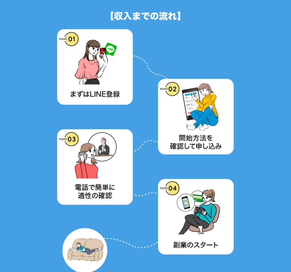 収入までの流れについて、公式サイトには以下4つの手順が記載されています。