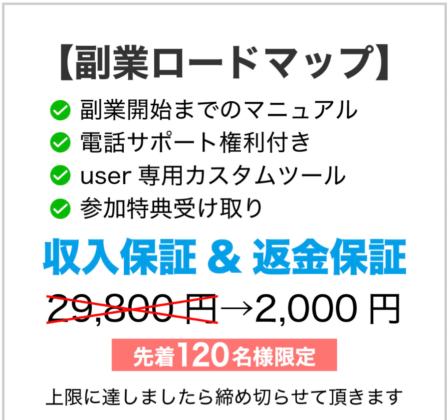 副業を始める為には、「副業ロードマップ」というマニュアルの購入が必須みたいですね。