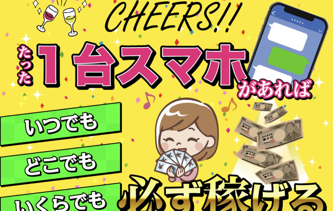たったスマホ1台あればいつでも、どこでも、いくらでも必ず稼げる副業だそうです。