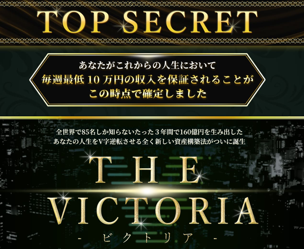 ”VICTORIA(ビクトリア)”は、全世界で85名しか知らない、たった3年間で160億円を生み出した、あなたの人生をV字逆転させる全く新しい資産構築法で、
