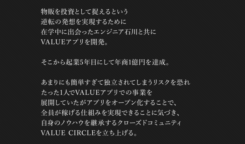 動画の内容はLPに書かれていることばかりで、肝心の国が認めた最先端システムの説明はありませんでしたが、”VALUE(バリュー)”は無在庫物販を行う案件ということがわかりました。