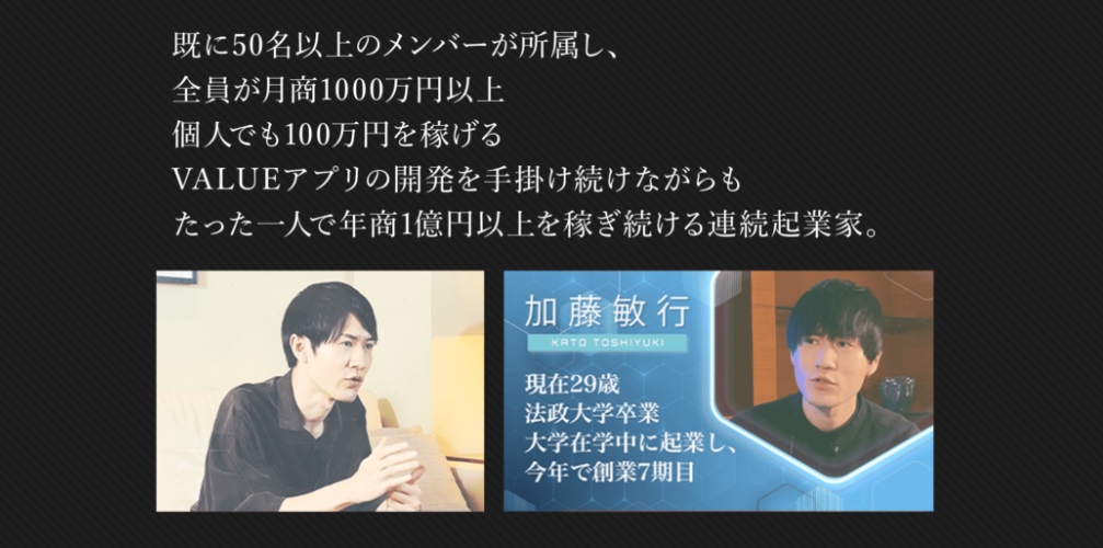 50名以上のメンバーも月商1000万以上を稼がせた実績も、でっちあげの実績、誇大広告で凄い人に見せかけているということでしょう。